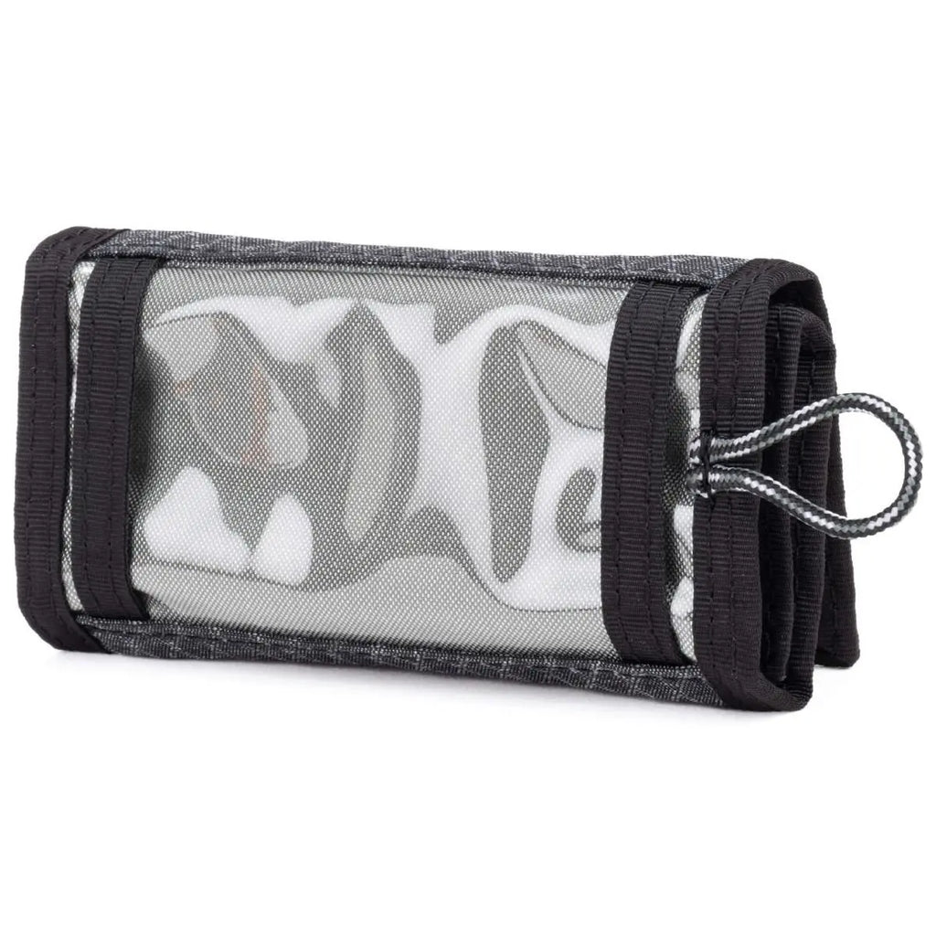 The wallet folds and fastens securely, keeping contents protected from dust, debris, and accidental loss. -